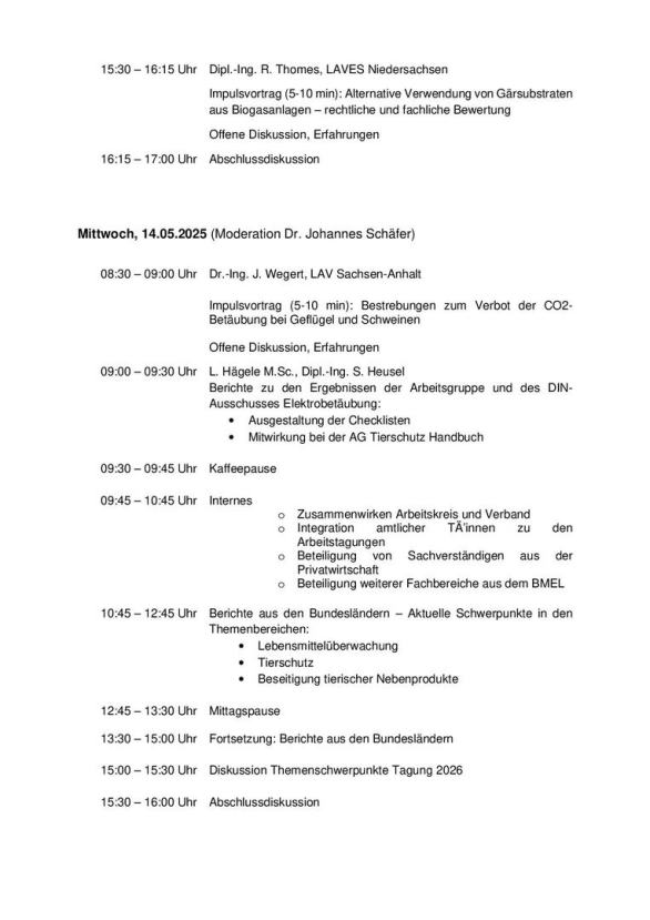 Programm der Arbeitstagung der technischen Sachverständigen / Amtsingenieure vom 16. bis 17.04.2024 in Kassel